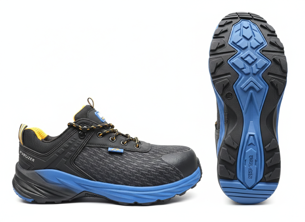 Les chaussures de sécurité KORA, sont réalisées avec une tige en tissu mesh et des renforts en TPU qui garantissent flexibilité, respirabilité et résistance à l’abrasion.